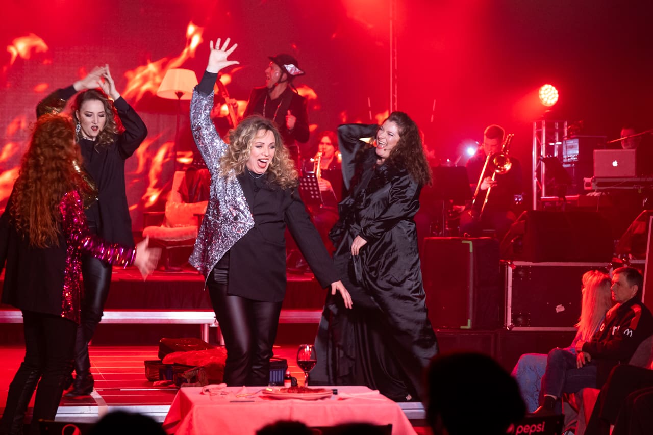 Все персонажи драмы наделены эстрадной пластикой, характерной для представителей поп-культуры, они облачены в экстравагантные костюмы и имеют яркий макияж. Джазовый ансамбль «Lyrica Classic» под управлением Виталия Коваленко расположился на сцене у задника. Сольные номера каждого из центральных персонажей оперы решены как эпатажные эстрадные выходы, при этом постановка не теряет драматургической внятности и цельности, эти «вставные номера» не разрушают единство формы, а скорее еще ярче подчеркивают мюзикловую природу опуса. В стилистике джаза органично вокализируют Елизавета Бокова (Эвридика) и Сергей Дудинский (Орфей) – певцы, специализирующиеся на этом стиле. Но и чисто оперные исполнители великолепно освоили непривычную для себя манеру и отлично вписались в предлагаемый контекст – это Илья Хардиков (Гермес), Илья Ушуллу (Плутон) и трио «Melody» (гарпии-отравительницы).