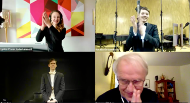 From the online premiere of the oratorio Requiem for the Fallen. On the photo are: soprano Yulia Petrachuk, conductor Michael Kotelnikov, conductor Michael Wittenburg, composer Emmanuel Dubois. Click to learn more