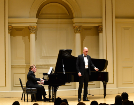 Bass Gregory Soloviov and pianist Michael Fennelly perform in the concert "On the Wings of Winter" at Carnegie Hall, NYC.